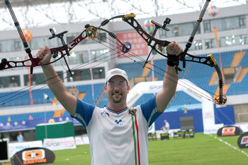 Ils ont monté le niveau dans la deuxième volée alors que la pluie se calmait. Le Salvadorien tirait 10-9-10, alors que l’Italien faisait 9-X10-9. Le score était à égalité à 55-55.