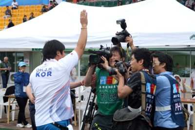 Brady ELLISON (USA) J’ai tiré comme d’habitude. Tout allait bien, rien de spécial. En fait j’aimerais dire qu’aujourd’hui on a vraiment eu des conditions parfaites pour tirer ! Les Coréens sont très gentils. On est bien accueilli. A quelque part, ça fait plaisir que les archers coréens battent les records du monde devant leur public !