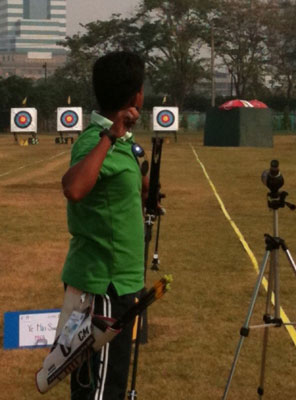 The men’s compound match was an Indian affair between HANSDAH and SRITHER. Three shoot-offs were necessary to determine the winner. The more experienced HANSDAH won in the end. YE Min Swe from Myanmar won the bronze (photo).