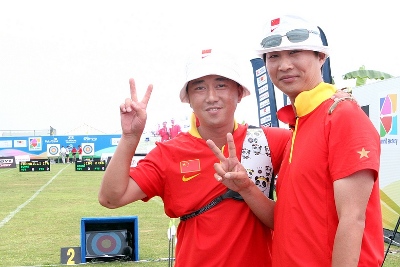 Ce match a opposé le champion du monde 2003 Michele FRANGILLI au no. 15 des qualifications JING Xianqing (photo). L’Italien a entamé cette finale sur le score de 9-10-9, alors que son adversaire tirait 9-10-8. L’Italien menait 2-0, mais ses flèches assez faibles au deuxième set (8-x10-8) ont permis à JING de revenir avec 9-9-10 pour égaliser à 2-2. L’archer chinois a enchaîné avec x10-x10-8 pour battre les flèches à 8-9-9 de FRANGILLI et mener 4-2. L’Italien a tiré x10-9-9 au dernier set. JING a quant à lui commencé par 9 et x10. Il lui fallait ainsi un 10 pour gagnant, ce qu’il a fait! C’est sa première médaille d’or à ce niveau de compétition.