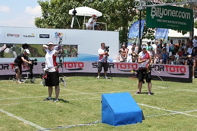 Crispin DUENAS: Ça a été de loin le match le plus serré de la journée, et de loin le plus intéressant. Le 6 de FRANGILLI a été une surprise, et c’est ce qui a provoqué l’égalité dans les flèches du temps réglementaire. Le barrage a été très proche mais FRANGILLI s’est imposé en tirant un 10 sur la ligne. Très bons tirs des deux archers.