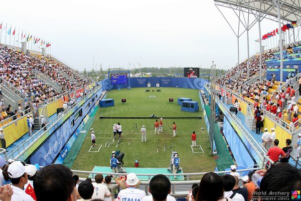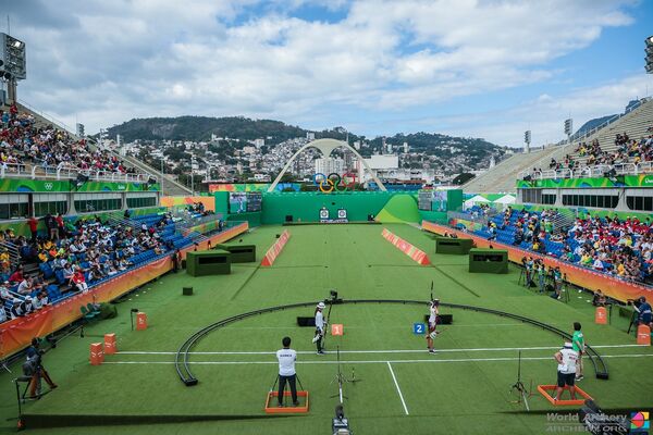 Les archers tirent à une distance de 70 mètres sur des cibles de 122 centimètres de diamètre, en essayant d’atteindre un anneau central qui mesure 10 centimètres de diamètre. La phase de qualifications, qui consiste à tirer 72 flèches pour un total de score, permet de sélectionner les archers pour la phase de matchs.