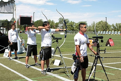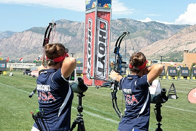 Archers shot their individual elimination matches Thursday all the way to the semifinals at the Ogden World Cup. The recurve archers took to the field this morning contest their matches using the new Set System format - best of three sets until 1/8 eliminations, best of five thereafter. The compound athletes then took the baton to shoot the second ever Compound Round (Hit/Miss at 50 metres)!