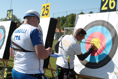 It was a difficult beginning for the Italian recurve men. Ilario DI BUO (32) was out in the second round already (4-6), beaten by Sermet CINAR (TUR/33). The 2004 Olympic champion and 2009 World Cup Final winner Marco GALIAZZO (10) suffered defeat also after two matches. He was kicked out by Bair BADENOV (RUS/58) on the score of 6-4. Michele FRANGILLI (12) remains however, but he went through difficult matches, being led 0-4 by Dmitri DANCOV (AZE/101) in the first round before winning 6-4 and going to a shoot-off at 5-5 against Lars EGGESTIG (SWE/53) in the second round. Only Mauro NESPOLI (13) had two easy victories 6-4 and 7-3 over Baasanjav DOLGORSUREN (MGL/100) and Philippe ARSENAULT (CAN/61).