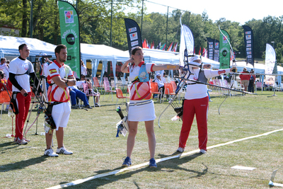 After defeated the No. 2 seeded team in the previous round, Slovenia had the difficult task to shoot against France, No. 3. The pair CERNE/TURSIC took a 3-point lead after the first end (37-34), taking advantage of a 7 by the Frenchwoman Joanna CHESSE at the fourth arrow. Scoring a perfect second end, the Slovenians increased their lead to 77-69 at the half-way mark. The gap was dug and it was impossible for the team GENET/CHESSE to recover (145-153). The second semifinal featured the top seeded team USA against Russia (4). The match was tight, the Americans WILDE/COLIN taking a 1-point (38-37) and then 2-point (73-71, 112-110) lead with one end to go. The four 9s shot by DAMBAEV/LOGINOVA were not enough to recover and Russia let victory to USA (146-150).
