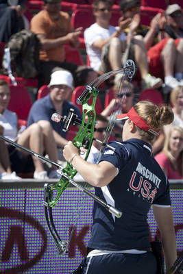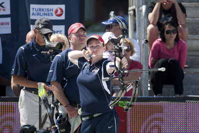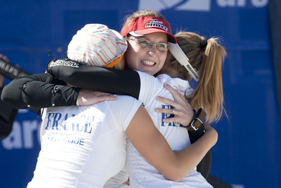 Advantage to America's ANSCHUTZ in the first end with 29 points versus 28 for her opponent from Russia. The match was close and the lead remained American for one point at 58-57 at the half-way mark. With two 10s to close the third end BALZHANOVA tied up the match at 85-85. Feeling danger coming, ANSCHUTZ put pressure with two 10s and a 9. She recovered the lead 114-113. BALZHANOVA's inexperience showed during the match and even more at the end. Though still in the match before the last arrow, she closed it with an 8, which gave ANSCHUTZ the opportunity for a 10 leading to the win (143-141).