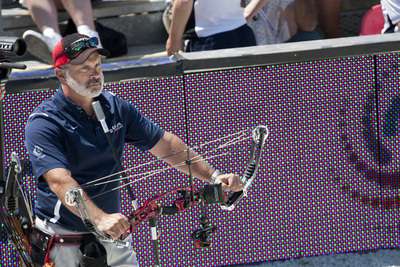 Back on the field just after shooting in the men team's gold medal match WILDE scored two 10s in the first end. With his teammate shooting 9-10, the Americans took a 1-point lead (39-38). The young lady from Slovenia CERNE seemed really nervous scoring an 8 in the second end. Her teammate TURSIC also closed the second end with an 8. With WILDE releasing only perfect arrows up to the half-way point, the Americans doubled their advantage at 77-73. The Slovenians regained their self-control in the third end. The two teams scored three 10s and a 9 and the gap remained at 116-112. WILDE certainly had a big advantage being on the field before for another match. He proved once again his great skills shooting only 10s in this match to offer victory to Team USA by 155-150.