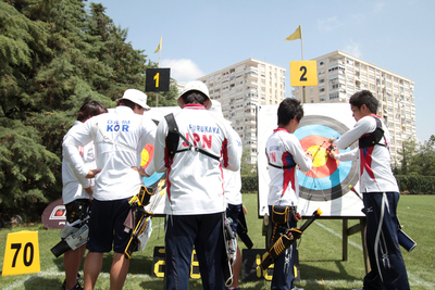 Recurve archers shot 4 ends of 6 arrows at 70 metres, while in compound the matches consisted in a new Compound Round (4 ends of 6 arrows at 50 metres). The US teams displayed their great form by qualifying for three out of four gold medal finals. They will face Korea in Recurve Women, Denmark in Compound Men and Iran in Compound Women. In Recurve Men, Japan upset Korea and will shoot the gold medal match against France. Last but not least, the morning was marked by two new world records in Compound. Recurve Men
