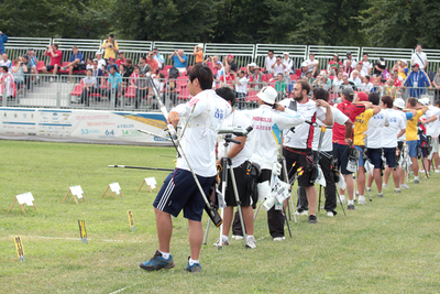 That would be great! Of course I will be happy. But I will be able to tell more after. We will see what will happen. How was the shooting today? The weather is good. And it seems like there is no wind, but this was the issue. Except the last two ends I was aiming to the right side of the gold, because the arrows were blown from the centre to the left. I felt a bit nervous but I shot well. I did the maximum of what I planned for today and I am very happy. Thomas AUBERT, Séverine DERIAZ, Mariya LARKINA, Dajana PICCOLO, Matteo PISANI, Rebecca RABOZZI World Archery Communication
