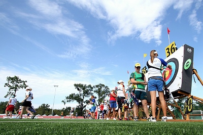 All the compound archers shot matches of 15 arrows (5x3 arrows) with cumulative scoring at 50 metres.