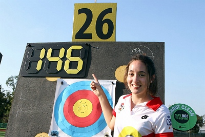 Clara NIETO TALADRIZ (ESP) broke the world record of this category with 146 points! She beat the No. 3 seed Mariia VINOGRADA (RUS) in the 1/8 elimination round 146-141. Moreover the bottom of the draw became really open when Rachel HUGHES (NZL) defeated the No. 2 seed Sydney WATSON (CAN) 143-142.