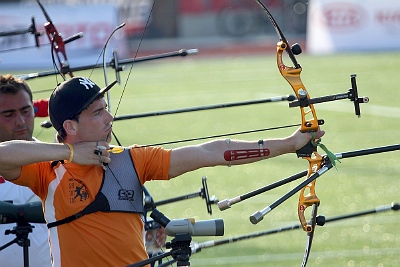 Not as well as I expected, to be honest. On a FITA Round (144 arrows at various distances), I was regularly shooting between 1310-1320 points last year. This season I have not reached many times 1300 points. We thought I would peak for the world championships in Turin but it did not happen. I shot 1270 and I was very disappointed, because it put our team out of the top 16 in qualifications. Therefore we missed the matches and the chance to qualify a team for the Olympic Games. If I had shot 1310 in Turin, we would have ranked 13-14th. It went a bit better for the individual matches, where myself and the other Rick (VAN DER VEN) finished 17th. Then we had to play the Olympic individual qualification play-off with seven archers for only two spots. Unfortunately, Rick and I finished tied in 3rd place. We just missed it. We have two more chances next year: at the European Championships in Amsterdam we could qualify one individual, but most importantly we could qualify a full team at the last world qualifier in Ogden (USA) in June next year. We really want to qualify a team!