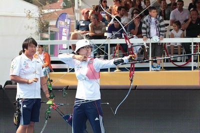 On Korea's side, only the No. 1 female archery JUNG Dasomi is left in semifinals where she will face the Chinese CHENG Ming. SCHUH will face the young, talented Indian Deepika KUMARI. In the men's competition, PREVOST will be against the best recurve archer in the world Brady ELLISON who easily defeated the Turkish wild card Yagiz YILMAZ. The second semifinal will feature the 2004 team Olympic bronze medallist from Ukraine Dmytro HRACHOV and the Chinese contender DAI Xiaoxiang. The World Cup Final competition started on Saturday with the compound events. The recurve matches then followed on Sunday, 25 September with the quarterfinals and mixed team match in the morning. The Rumeli Castle is just across the river, which is spanned by theFatih Sultan Mehmet Bridge, a structure connecting Europe with Asia and providing yet another dramatic backdrop for the archers. The athletes have no second chance as they start directly in quarterfinal knockout matches. The recurve quarterfinals and recurve mixed team match took place on Sunday morning, 25 September. These matches will be followed by the individual semifinals and medal matches in the afternoon. The recurve matches are played in the best-of-five sets format. Each set consists in three arrows and is worth two points; each archer gets one point in case of a tied set. The first archer with six set points wins the match. In case of a tied match at 5-5 in set points, a one-arrow shoot-off is played. The winner is the archer whose arrow is closest to centre. Recurve Men – Quarterfinals The defending champion from Edinburgh and No. 1 in the world, Brady ELLISON (USA), has emerged last year as THE archery star! He is the only competitor in the category to have experience of a World Cup Final. OH Jin Hyek (KOR) also benefits from high level competitions experience, being two times team world champion (2009, 2011) and one time individual silver medallist (2011). The other archers have burst on the front stage this season.