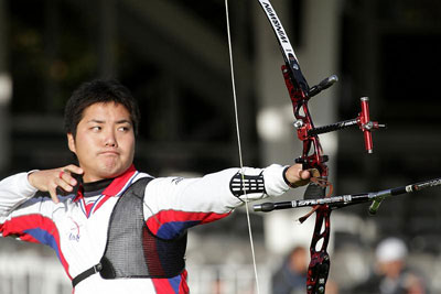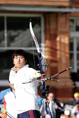 Medal Matches Brady ELLISON (USA) – gold On calling out the doctor: “I felt really bad this morning. I got bad sick and had to call out the doctor because I had a bad migraine.” On wearing as much pink as possible (support of breast cancer charities): “I try to get as much of my stuff as possible pink when I’m shooting. I don’t wear pink tops because I think that would be going too far.” On his success: “I’m shooting well and practising hard. I was staying strong in the wind. There were a lot of shots that I was frustrated with because of the wind, but I knew I couldn’t do any more.” “In the wind it’s the luck of the draw and in the hands of God.” On his trademark “Brady Wave”: “It’s in remembrance of Lane FROST (USA), a bull-rider whose life was the subject of a movie Eight Seconds.” “He was one of my heroes when I was growing up, he was one of the first people that I looked up to. He died in the 1980s.” IM Dong-Hyun (KOR) - silver On the blustery conditions: “It was very windy, so it was difficult to deal with.” On his reaction to losing: “I’m not disappointed.” LEE Joe Huyng (MAS) - coach On his archer’s experience at the test event: “This is only my player’s second time in a big event, so it is a good experience for him and for the Olympic Games next year.” Dmytro HRACHOV (UKR) - fourth On being the only European in the finals: “I am very overwhelmed with pride to be the only European left.” On the weather: “The weather conditions were very difficult. This stadium is not ideal for Archery because it is too windy. You may shoot a 10 and then the next arrow hits the seven-ring, without any reason.” Quarterfinals
