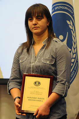 Ø Best Youth Representatives of 10 Successful Sports – Mary ARABIDZE (Chess), Nana GOGASHVILI and Tamar KAKASHVILI (Trampoline), Konstantine MIKAUTADZE (Rugby), Lasha GULELAURI (Athletics), Lasha TALAKHADZE (Weightlifting), Tornike SHENGELIA (Basketball), Davit TARGAMADZE (Football), Shota GOGISVANIDZE (Greco-Roman wrestling), Beka GVINIASHVILI (Judo), Slava REZISIDZE (SAMBO)