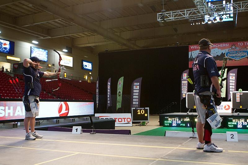 This gold medal final features two archers who have both won double gold medals (team and individual) at an Indoor World Championships. Jimmy BUTTS in Havana in 1999, competing at the time on the same team as Dee WILDE, father or Reo. BUTTS hasn’t been very active on the international circuit since. Reo was world indoor team and individual champion in 2003 in Nimes and 2005 in Aalborg (he also won a third team title in 2007).