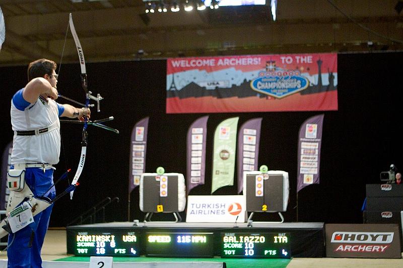As No 1 of the World Ranking and winner of the qualifications, Brady ELLISON is the big favourite in this final. He is also an indoor team world champion from 2009. Heribert DORNHOFER is a surprise finalist – it is not his first Indoor Worlds but it is his first shot at a medal at the world level.
