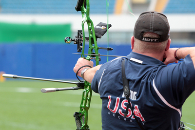 The American champion Reo WILDE, recent Indoor World Championships and Indoor World Cup champion 2012, and Shanghai World Cup Stage defender from last year, topped the compound men qualification's first half with 354 points. Two points behind were Peter ELZINGA (NED) and Dominique GENET (FRA), 2nd and 3rd at the halfway mark. WILDE's teammates Rodger WILLETT JR (351) and Dave COUSINS (350) were ranked 4th and 5th provisionally, while the fourth American Braden GELLENTHIEN was 7th (349) at that time.