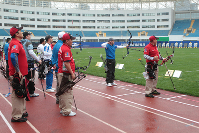 There were four matches in compound men, all other teams having byes in the first round. The Italians (5) showed very strong shooting, setting a new national record with 237 points. With such a score they easily got the upper hand on their opponents from Mongolia (12) with 223.