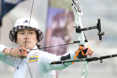 Recurve Women Individual – Bronze Medal CHOI Hyeonju (KOR/5) v Miranda LEEK (USA/34) At 24 years old CHOI Hyeonju is a newcomer this year in the Korean national team. Competing in her first international event, she reached the bronze final in Shanghai. Though very young, her opponent Miranda LEEK, 19, became team indoor world champion and individual runner-up in Vegas early this year. She reached her best world ranking, 15th, just before Shanghai after she won both the individual and team events at the Arizona Cup three weeks ago. The Korean had a perfect start with two 10s. As her opponent scored 8 and 9, CHOI clinched the first set with a 9 (2-0). She continued with three arrows in the yellow, three 9s. Starting with 9-8, LEEK could have tied the set with a 10, but she shot a 9, lost the set and trailed 0-4. CHOI did not allow any chance to her opponent from the U.S. to recover in this match. She again did not leave the yellow ring (10 or 9). With 29 points in the third set, the Korean clinched a straightforward victory, 6-0. LEEK let the medal go without having anything to be ashamed of. She was consistent in her game with 27-26-27, but her opponent was consistent at a notch higher level with 29-27-29.