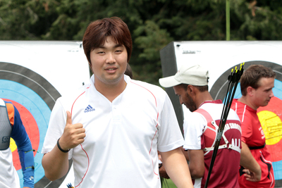 Second at the half-way mark was IM's teammate KIM Bubmin with 346, closely followed by the world No. 1 archer and World Cup champion Brady ELLISON (USA) with 344. Two competitors followed with 343 each: Romain GIROUILLE (FRA), and Rahul BANERJEE (IND). Then were DAI Xiaoxiang (CHN), the two Italians Michele FRANGILLI and Mauro NESPOLI, and the two other Korean representatives, OH Jin Hyek and KIM Woojin, all with the same score of 342.