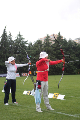 Chinese Taipei placed three competitors in the quarterfinals; TAN Ya-Ting, YUAN Shu Chi and LIN Chia-En, with the last two facing each other in this round. Korea had two representatives, LEE Sung Jin and CHOI Hyeonju, while there was also XU Jing from China, Deepika KUMARI from India and Karina WINTER from Germany. The latter was the only non-Asian left in the race!