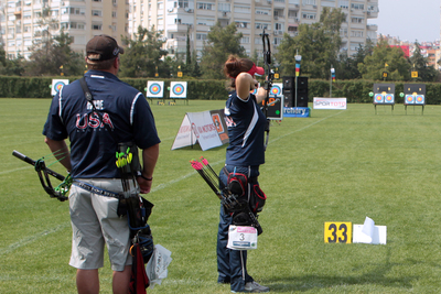 Three encounters were one-way matches in compound and saw the highest seeded teams win. The top seeded double USA defeated Denmark (9), 157-147. Great Britain (5) eliminated Australia (13) by 155-148. And the Italians (2) beat France (7) 154-149.