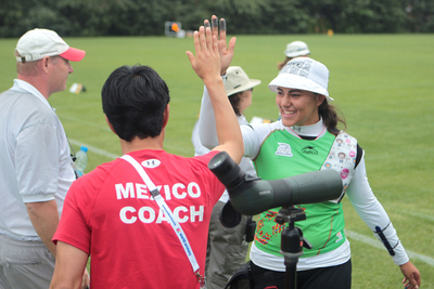 After surprising the No. 2 pair USA in the first round, it was more difficult for the Turks in the second against Mexico (7). KIRSEVER/LOKLUOGLU trailed by four points after they shot a 6 in the first end (34-38). Their opponents Luis Eduardo VELEZ/Alejandra VALENCIA added one more to their advantage at the half-way mark (74-69) and then led by seven with four arrows to go (111-104). Despite a perfect final end with four 10s, the local pair woke up too late and lost by three (144-147).