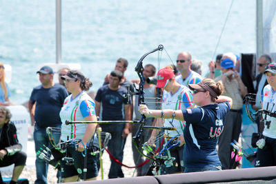The Italians proved perfect despite the breeze blowing on the beach, scoring four 10s in the third end. They took a 1-point lead after the Americans scored 29 (117-116). There was a draw with two arrows to go for each team, as TONIOLI/PAGNI scored 8-10 and ANSCHUTZ/WILDE 10-9. As the Americans then concluded with 10-9 and his teammate with a 9, PAGNI needed a 10 to tie and go into a shoot-off… The Italian did it!