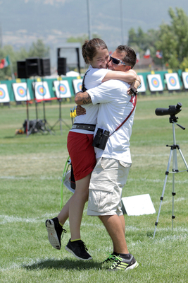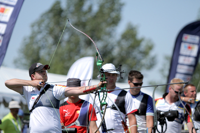 In the opening set No. 14 seed Sermet CINAR (TUR) Roman and No. 19 seed VENGEROV (AZE) tied with 28 points making the set score 1-1. VENGEROV won the next two sets making the score 5-1. CINAR battled back winning the next two sets bringing the set score to 5-5 and forcing a shoot-off. In the shoot off CINAR shot a 7, which is usually not enough to secure a victory, but given the day’s windy conditions it was enough. VENGEROV’s arrow scored five points giving CINAR the victory and bringing him one step closer to London.