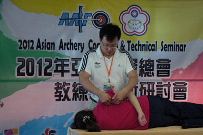 The following lectures were given at the Highness Hotel in Taoyuan: Ø Archery Performance Diagnostic: Dr JANG J. T. Ø Biomechanics for Archery: Prof Dr TANG Wen-Tzu Ø Physiology for Archery: Dr LEE Alex J.Y. Ø Sport Organisation Governance: Prof Dr CHIU Ping-Kun Ø Injuries in Archery: Dr CHENG James S.C. Ø Statistic for Archery Coach: Dr CHEN Chen-Yueh Ø Archery Training: Mr WU Tsung-Yi Ø How to train your brain for better shooting: Prof Dr UM Sung-Ho Practical workshops were conducted during one day and a half on the tremendous permanent archery range of the National College of Physical Education & Sports in Taoyuan by Mr Pascal COLMAIRE, World Archery Development and Education Director, on the following topics: Ø Full draw efforts / how to get the clicker Ø Shooting in the wind / Aiming body centre Ø Release Ø Visual activity Ø Breathing (and visualisation) The seminar was perfectly organised. Doubtless the regular holding of this type of training contributes to the strength of the Asian archery. World Archery Development Department