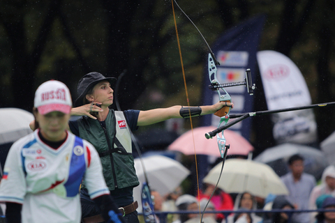 IM Dong Hyun (KOR/1) v Takaharu FURUKAWA (JPN/8) Korea’s IM Dong Hyun must be coming into this World Cup Final looking for some Olympic revenge. The world No. 2, but entering the competition as No. 1 in the World Cup ranking, stamped his mark on the ranking round at the London Games. He shot a new world and Olympic record of 699, beating his old record by 3 points and taking the top spot going in to the eliminations matches. But those eliminations did not go well, with his team having to settle for bronze, despite being ranked No. 1 in the team event as well. Individually, IM only just made the top ten at the Olympic Games. He would be looking for more world record shooting consistency here; however, his first match was tougher, in theory, than he bargained for. His quarterfinal opponent, Japan’s Takaharu FURUKAWA, is only at this year’s World Cup Final as a host nation wild card entry, but after his fantastic individual silver medal at London 2012 no one was writing off his chances here in his home country. Maybe, the rain ruined a bit FURUKAWA’s plan. Heavy rain has never disturbed IM Dong Hyun, since he shot a world record in Shanghai under pouring rain in 2011. He was supreme in this match and did not leave the yellow. IM won it over FURUKAWA 6-0 (28-26, 30-26, 27-25). Recurve Women LIN Chia-En (TPE/7) v KI Bo Bae (KOR/2) Chinese Taipei’s LIN Chia-En was a late entry after China’s withdrawal but her bronze medal at the 2nd World Cup leg in Antalya Turkey shows she means business and is a real medal prospect. However, the first round challenge was none the less than a first round draw against double London Olympic gold medalist and world No. 1 KI Bo Bae (KOR). It was raining quite hard this morning and adapting to it would be a factor. LIN took the best start and won the first set 26-24, but KI came back strong in the second set with 9-10-10 to tie the match at 2-2. The Korean continued on a nice fashion with 10-10-9 to take the lead 4-2, despite some good shooting from LIN (9-9-10 in the second and 9-9-9 in the third). LIN could not put any pressure on the fourth set with 8-9-7. KI was on a roll with 10-10-10 to clinch the match 6-2! CHOI Hyeonju (KOR/3) v Alejandra VALENCIA (MEX/6) This World Cup Final in Tokyo is the first major international event in outdoor archery since the Olympic and Paralympic Games, and there are a lot of Olympic scores to settle. Alejandra VALENCIA was the only Mexican woman to leave London without a medal, as her teammates Aida ROMAN and Mariana AVITIA won silver and bronze respectively. VALENCIA met a team gold medalist from those Games, Korea’s CHOI Hyeonju in the quarterfinal. The two athletes started with 10-8-9 to share the first set. Then CHOI continued with 10-9-8, while VALENCIA scored 9-9-9. Match was at 2-2. CHOI scored 27 points again in the third set, but VALENCIA could up her game a little bit with 9-9-10 and take a 4-2 lead. However the Mexican shot a 6 in the fourth (10-6-8), while the Korean was really consistent with another 27 to tie the match at 4-4. CHOI opened the fifth set with a 9. VALENCIA found a good 10. CHOI scored a 10! The Mexican shot an 8 and lost the lead! CHOI needed a 10 to clinch the match with her last arrow. It was a liner 10, but it counts the same! VALENCIA finished with an 8. CHOI won the match 6-4 to advance to the semifinal.
