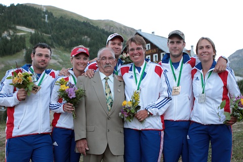 Michel ADNET surrounded by the French team medallists in Val d'Isere