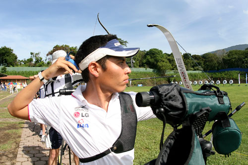 The country of El Salvador is welcoming the top archers in the world for the 3rd stage of the Meteksan Archery World Cup 2006. In the Americas, the archers shoot a whole FITA round during the qualifications. It means the men release 36 arrows respectively at 90, 70, 60 and 30 meters while the women go for 70, 60 50 and 30 meters. It also implies that the local Organizing Committee is offering medals to the top three archers at each distance. The archers took care of the long distances on Wednesday and the shorter ones on Thursday.