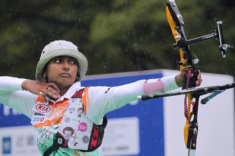 Korean YUN Ok-He, winner in Shanghai, and Chinese CUI Yuanyuan are the only athletes who have already secured their spot for Paris: YUN ranks 1st with 46 points and CUI is 2nd with 43 points. Further down the list are Russian Inna STEPANOVA (winner in Medellin), 35 points; Indian Deepika KUMARI (photo), 2012 silver medallist, and Korean JOO Hyun-Jung, 33 points; Mexican Aida ROMAN, 27 points; and American Miranda LEEK, 21 points, all clinching a qualifying place so far. Cyrielle COTRY, 35th world ranked, seems poised to defend the French colours in Paris. 2012 gold medallist KI Bo Bae (KOR) is currently in contention for a place in Paris, but with her 23 points, she’ll have to perform at least better than her teammate JOO if she hopes to see the Eiffel Tower. The ranking continues with Colombian Ana-María RENDON, Italian Natalia VALEEVA, Indian Bombayla Devi LAISHRAM, Ukrainian Anastasia PAVLOVA, Japanese Ayano KATO, Denmark’s Carina CHRISTIANSEN, and Italian Jessica TOMASI. The 2012 bronze medallist CHOI Hyeonju, no longer part of Korea’s national team, will also be absent this year.