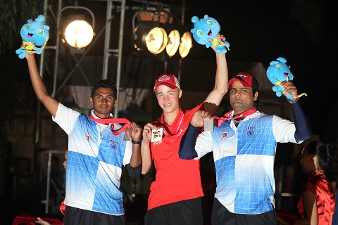 Jignas CHITTIBOMMA, aged 19 and also World Cup team medallist, secured a second individual podium for India. He won the bronze medal match with a last-arrow 10, 143-141, over Baptiste SCARCERIAUX (BEL), vanquisher of new senior individual world champion Mike SCHLOESSER (NED) earlier in the competition.