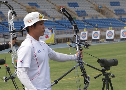 Recurve archers shot a qualification round of 72 arrows at 70 metres, which ranks athletes for the head-to-head competition brackets. Korean archers led today's field from the start.
