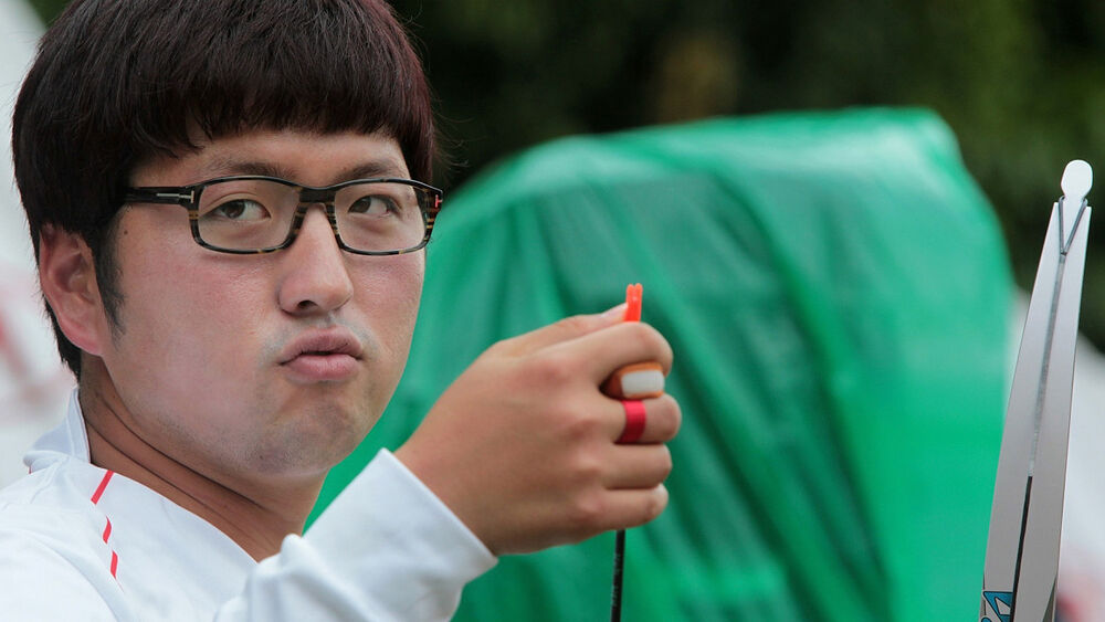 It looked like he was going to break the world record for qualification after shooting 353/360 for his first 36 arrows. Over the second 36, though, KIM wasn’t able to keep it as tight.