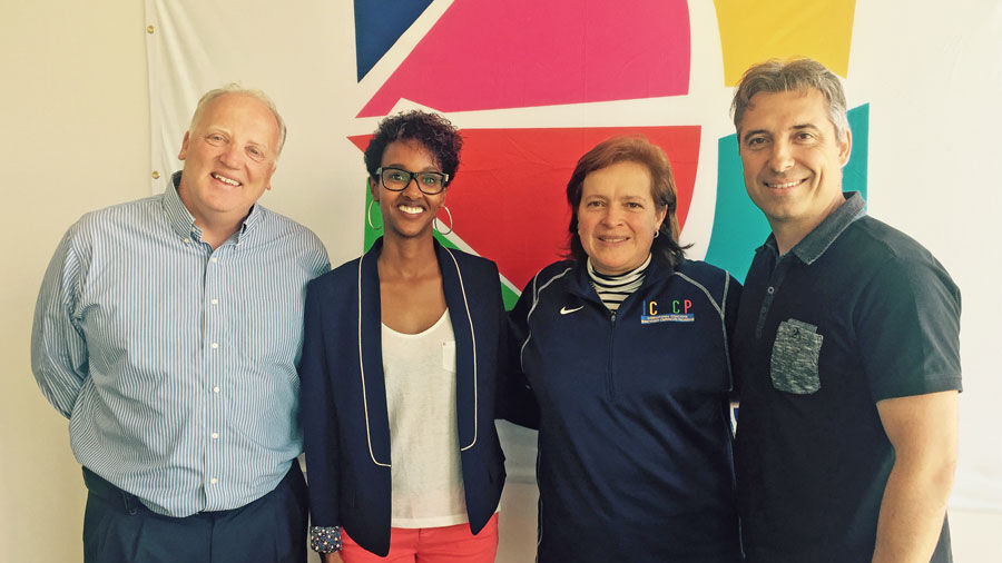 Together with her ICECP tutor Tracy LAMB, Director of the USA Olympic Training Centre, Maria Victoria visited World Archery headquarters in Lausanne on 27 April 2015. The pair introduced Maria Victoria’s project to World Archery’s Olympic Games and WAEC Director Juan Carlos HOLGADO and Senior Development Coordinator Deqa NIAMKEY, as well as asked for advice on the activities in Colombia.