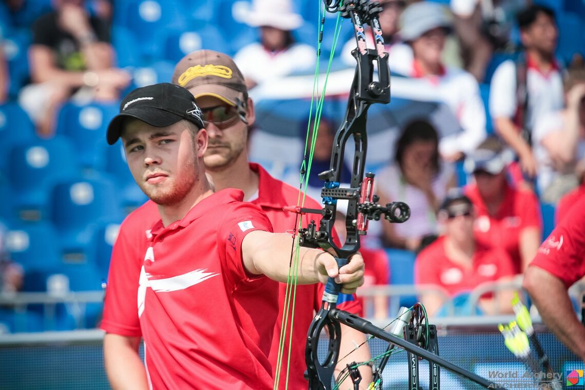 Patrick Laursen stepped up first, for Denmark, and put in a 10. World Archery Champion Stephan Hansen followed, and matched him, then Damsbo did the same tightening the screws on the States’ boys’ advantage.