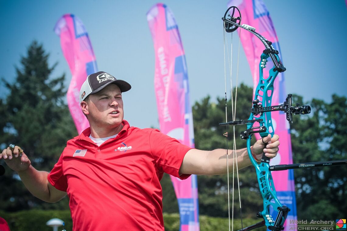 Second up for the USA, after Gellenthien put in a nine, Anderson’s arrow drifted wide.