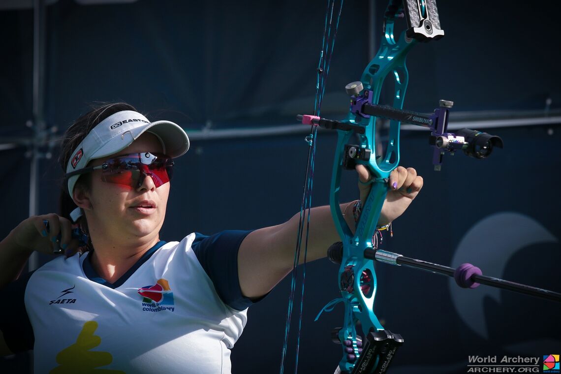 Still two points ahead entering the last three-arrow series, Colombia’s Sara Lopez dropped 10, after 10, after 10 into the target. Another perfect 30, another roar from the crowd and a win in front of friends and family, in Colombia, on the Archery World Cup circuit.