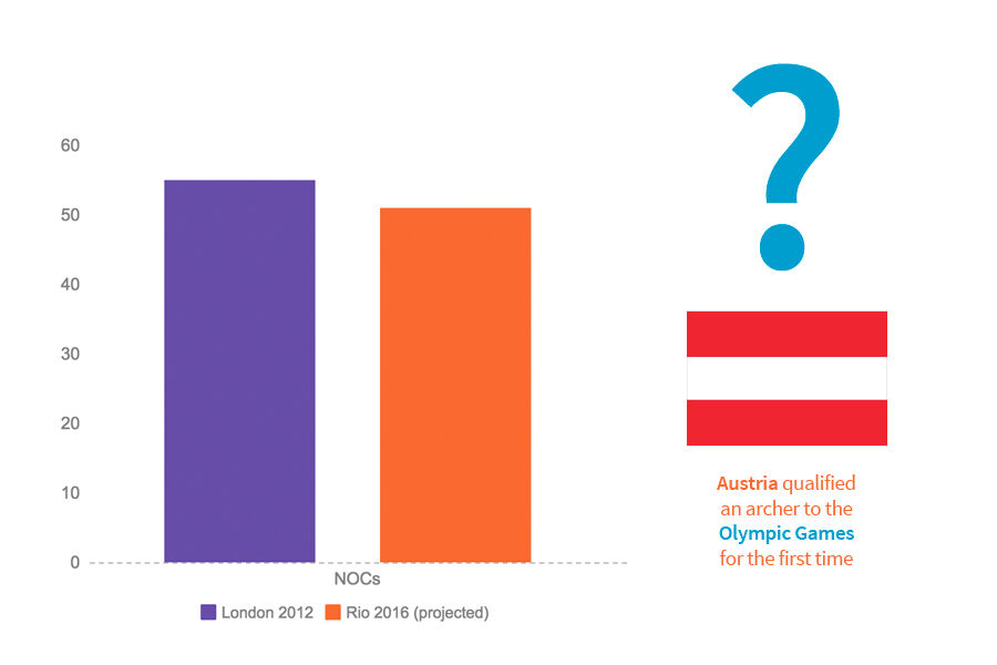 Overall, projections pin the total number of countries that will shoot in Rio 2016 at 51. That’s four less than in London 2012 but still a high number considering just 128 athletes enter the Olympic archery event.