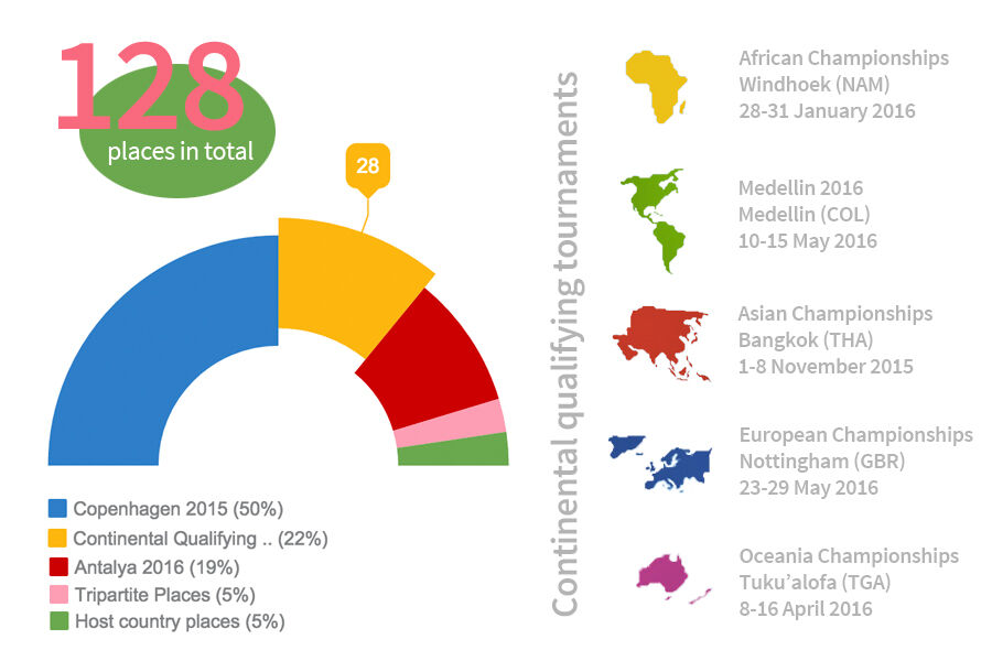 The next phase of the Olympic qualifying procedure is continental qualifying tournaments. At five events around the world, a total of 28 more spots will be awarded.