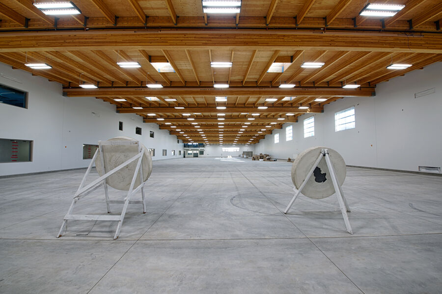 The multi-million dollar centre’s curved ceiling, supported by nearly-90-foot-long glulam wooden beams, was created to complement the classic flight of the arrow.