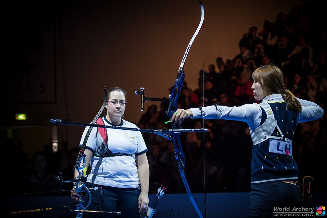 The Italian 27-year-old had averaged 29-points a set through her first four matches but kept her very best for the Nimes finals arena. Unfazed by the crowd and spotlights, she started the match with a 9-10-10 then proceeded to not drop another arrow out of the 10-ring.