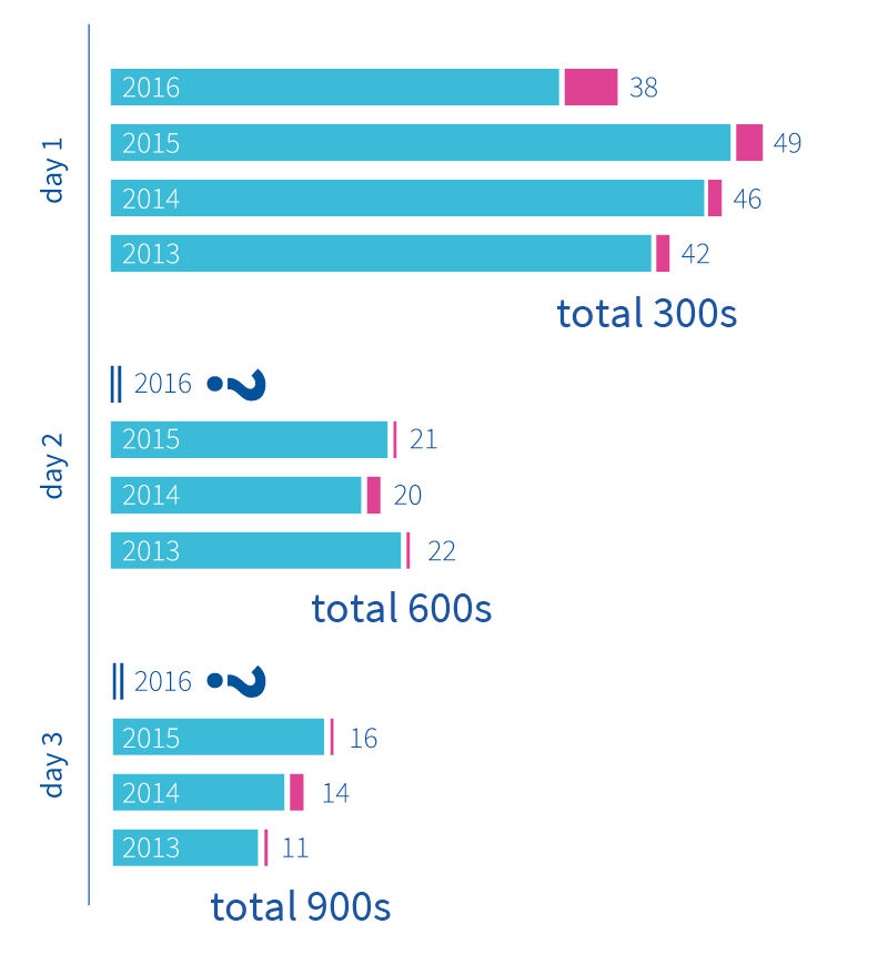 Despite the fact that this year’s Vegas tournament is the biggest in its history – with over 3,000 archers competing – the 34 clean after one day is the lowest number over the last four years of the event.