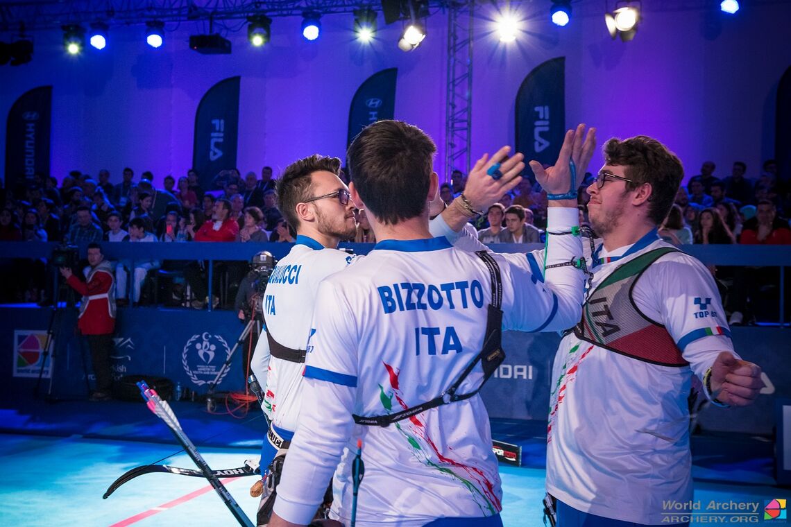 Tatiana Andreoli, Loredana Spera and Tanya Giaccheri picked up a second world indoor title in a row in a shoot-off with an all-new line-up from Chinese Taipei. Tatiana and Loredana were part of the squad that won the first crown in Nimes in 2014.