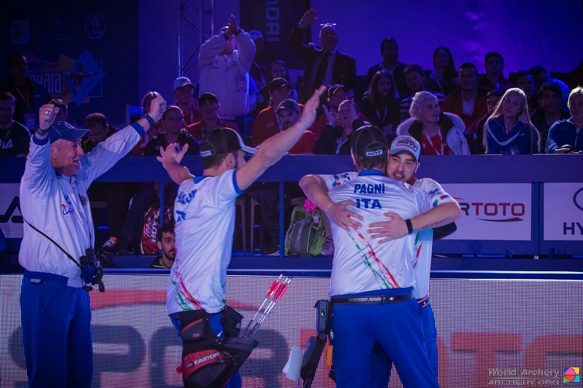 Italy also won the compound men’s competition in Ankara, courtesy of top-seeded trio Sergio Pagni, Michele Nencioni and Luigi Dragoni’s consistent shooting against the impressive Danish team. The Italians adjusted to the arena faster than their opponents, outlasting a late surge to take gold, 231-230.