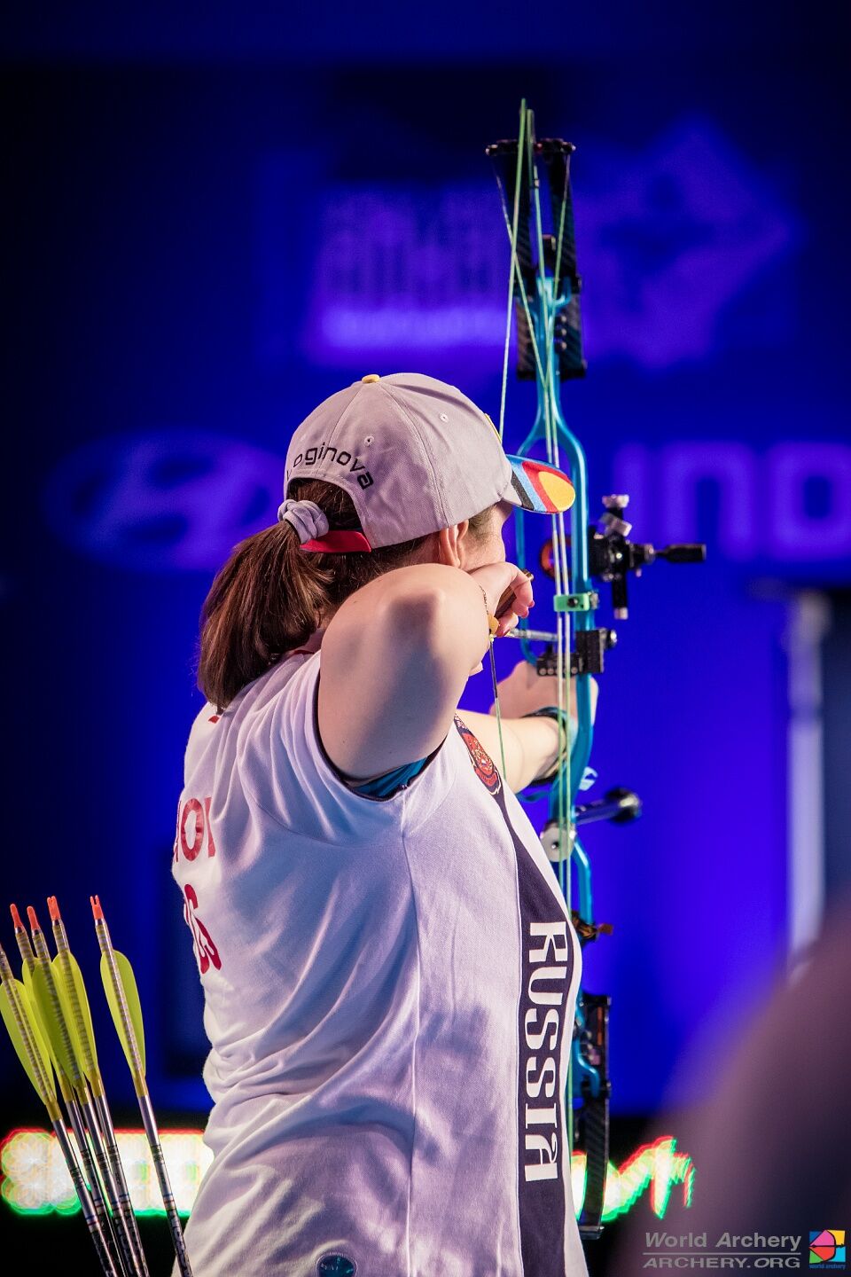 Russia’s compound women’s team fell just short in the team final against Denmark, losing in the shoot-off. Albina was taking much longer than usual to shoot her arrows, posting a couple of eights, which carried over to her individual final.